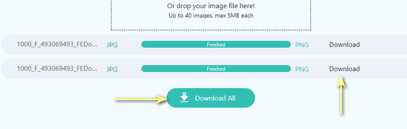 Finalmente, marque la Descargar or Descarga Todas para obtener copias de todas sus fotos convertidas.