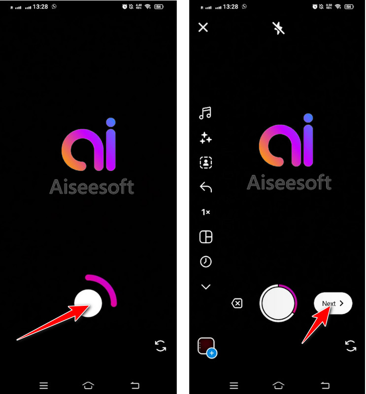 En el modo Reels, puedes seleccionar fotos de la galería de tu dispositivo para crear tus carretes de video. Toque el botón de carrete de la cámara para acceder a sus imágenes. Seleccione las fotos que desea incluir en su carrete tocándolas y podrá elegir varias fotos para crear un efecto similar a una presentación de diapositivas o usar una creador de collage de fotos y videos preferiblemente.