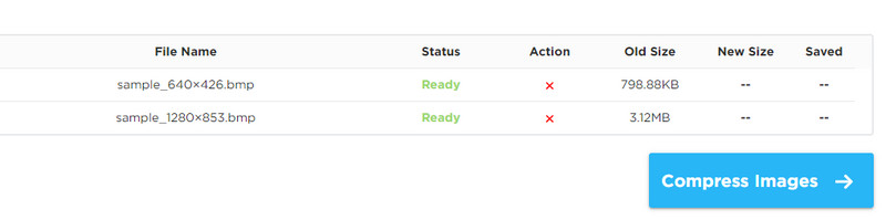 Aparte de eso, también puede cargar varios archivos y comprimirlos todos a la vez. Esta característica le permite ahorrar tiempo y esfuerzo en el procesamiento de archivos de uno en uno. Además de eso, este programa está infundido con tecnología AI que lo ayudará a optimizar y comprimir imágenes con menos tiempo mientras mantiene su alta calidad. Por otro lado, siga los pasos descritos a continuación para aprender cómo cambiar el tamaño de los archivos BMP en línea.