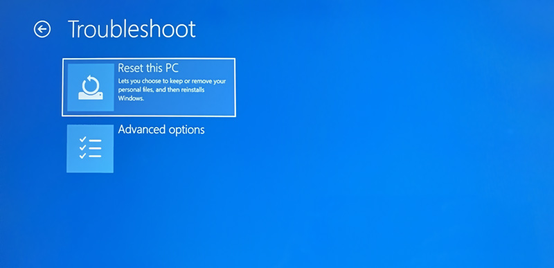 You can use the common way to restart your computer. When it starts to boot, press the F11 or Esc key repeatedly until you see the Recovery Options. If both keys don’t work, consult your laptop's documentation or the official HP Support for the correct key. Go to the Troubleshoot and then take similar steps to restore your HP laptop to factory settings.