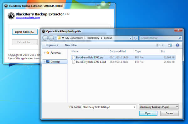 Paso 2 Haga clic en el botón "Abrir copia de seguridad..." para cargar su copia de seguridad de IPD en este software. BlackBerry Backup Extractor encontrará automáticamente sus archivos IPD.