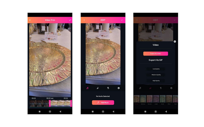 Con el programa móvil Loop Video, también puede reproducir un GIF en su teléfono Android. Con solo un procedimiento simple, podrá crear contenido en bucle a partir de los videos guardados en su dispositivo Android. Además, puede compartir directamente su producción con sitios web de redes sociales conocidos. Un defecto importante de esta herramienta es que está cargada de anuncios que pueden resultar molestos para muchos.