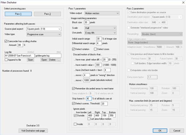 DeShaker es un estabilizador de video para VirtualDub. Se utiliza para eliminar el movimiento de la cámara y hace que la panorámica, la rotación y el zoom sean más suaves. Si desea utilizar este software, primero debe descargar VirtualDub, abrir su videoclip y agregar el filtro DeShaker. Luego optimizará su video inestable y tambaleante en DeShaker. (Encontrar estabilizador de iPhone aquí)
