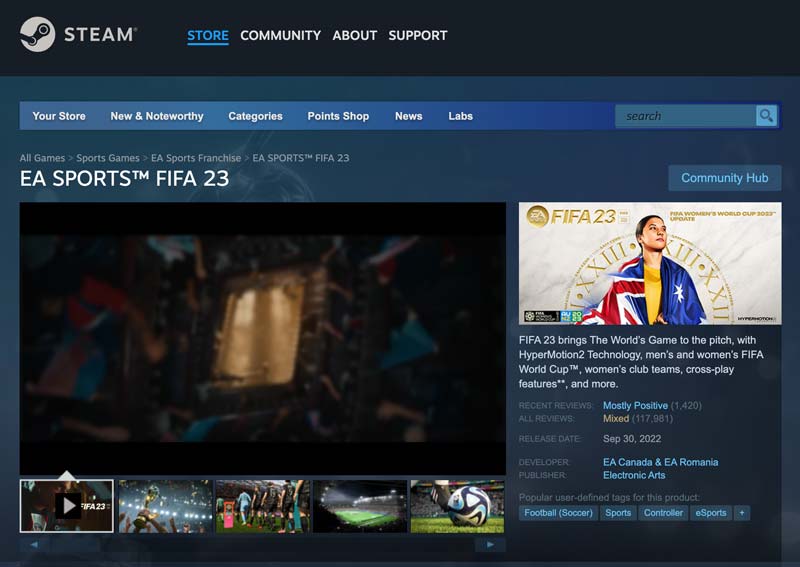 Si su PC cumple con los requisitos del sistema para el juego, compre y descargue FIFA 23 desde el sitio web oficial de EA o Steam. El videojuego de simulación de fútbol solo está disponible con una membresía EA Play o EA PlayPro. Por lo tanto, debes comprar una membresía para jugar.