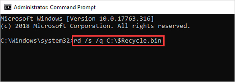 Type rd / s / q C: \ $ Recycle.bin in the Command Prompt window and press Enter. This command will delete the corrupted Recycle Bin folder. After that, your Windows system automatically recreates it.