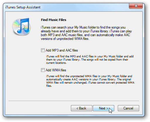 Paso 3 Desmarque las casillas junto a Agregar archivos MP3 y AAC y Agregar archivos WMA en la ventana Buscar archivos de música.