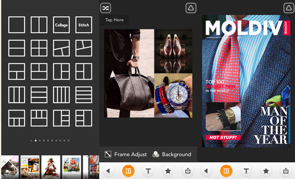 - 310 marcos básicos diferentes, 135 diseños de estilo de revista y ajuste libremente la relación de aspecto del collage.